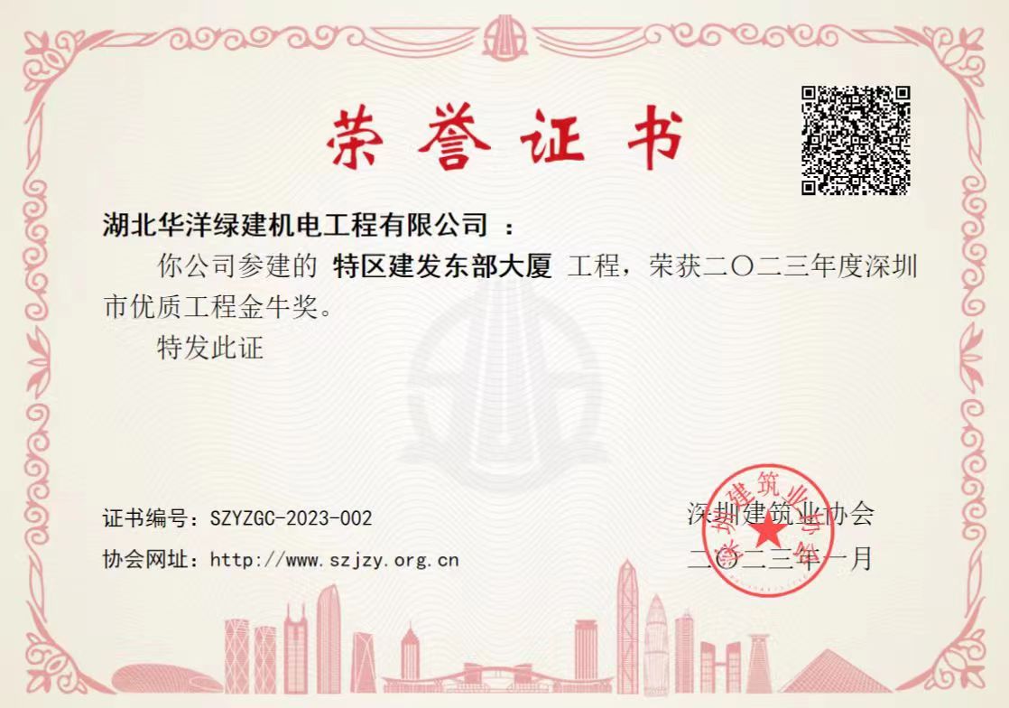 深圳特區(qū)建發(fā)東部大廈項(xiàng)目榮獲“深圳市優(yōu)質(zhì)工程金牛獎”